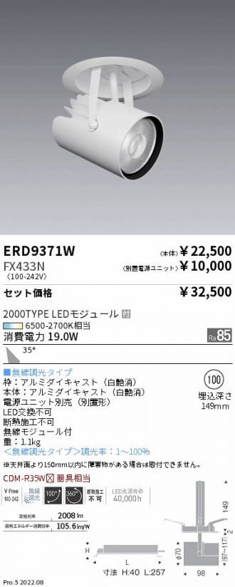 ダウンスポットライト Φ100(ERD9371W+FX433N)