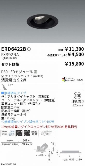 ユニバーサルダウンライト Φ100(ERD6422B+FX392NA)