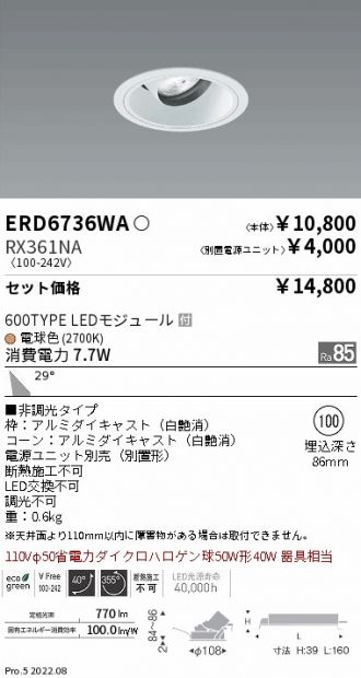 ユニバーサルダウンライト Φ100(ERD6736WA+RX361NA)