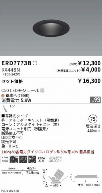 ユニバーサルダウンライト ブラックコーン Φ75(ERD7773B+RX448N)
