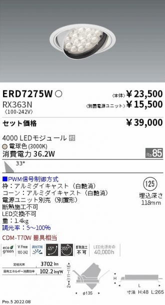ユニバーサルダウンライト Φ125(ERD7275W+RX363N)
