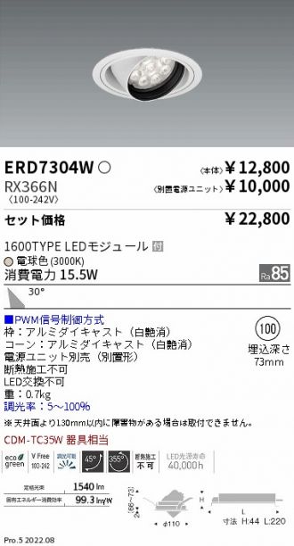 ユニバーサルダウンライト Φ100(ERD7304W+RX366N)