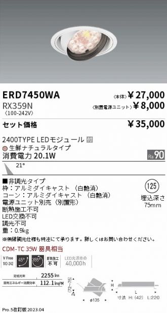 ダウンライト(生鮮食品用照明) Φ125(ERD7450WA+RX359N)
