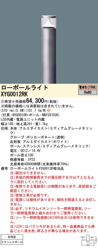【代金引換不可】地中埋込型 LED(電球色) ソーラー用ローポールライト 防雨型/地上高291mm(NYG0010R+NNY28702K)