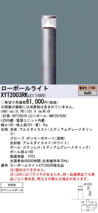 地中埋込型 LED(電球色) ローポールライト 全周配光タイプ(白反射板) 防雨型/地上高291mm Bijou(美丈/ビジョウ)(NYT2001RLE1+NNY28702K)