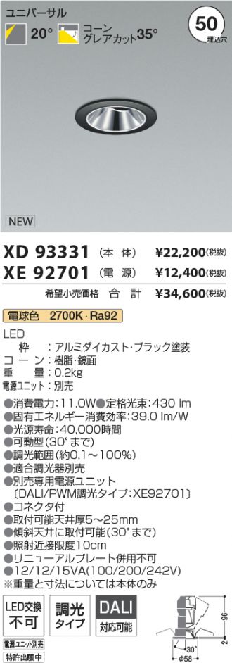 【代金引換不可】ユニバーサルダウンライト(XD93331+XE92701)