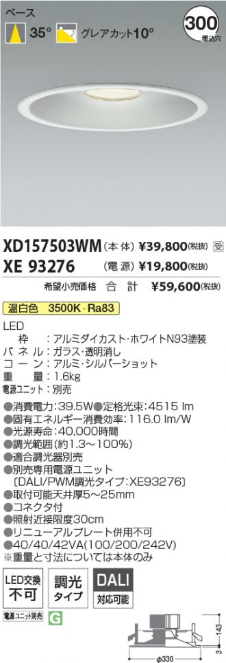 【代金引換不可】ダウンライト(XD157503WM+XE93276)