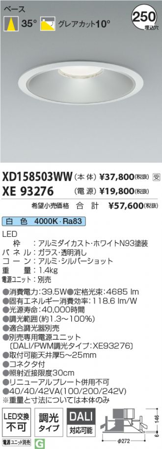 【代金引換不可】ダウンライト(XD158503WW+XE93276)