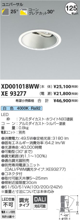 ユニバーサルダウンライト(XD001018WW+XE93277)