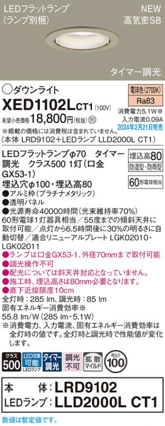 天井埋込型 LED(電球色) 軒下用ダウンライト・エクステリアダウンライト 浅型8H・高気密SB形・拡散タイプ(マイルド配光) LEDフラットランプ交換型・防湿型・防雨型/埋込穴φ100 パネル付型 白熱電球60形1灯器具相当(LRD9102+LLD2000LCT1)