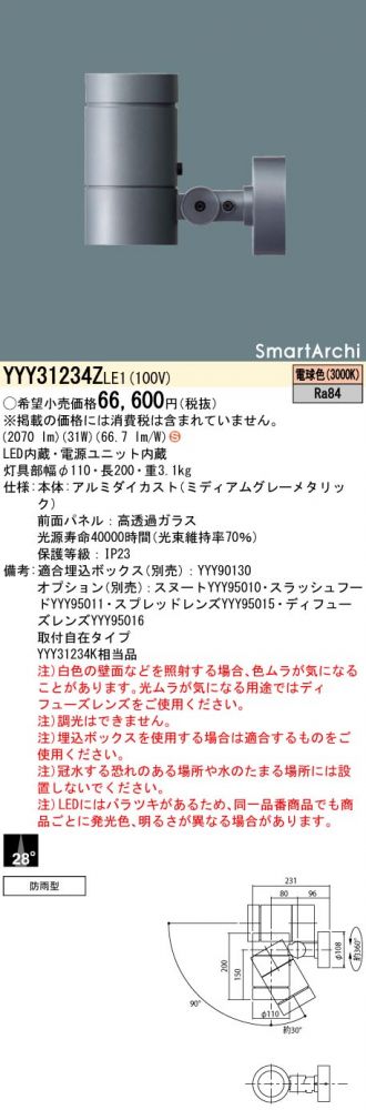 天井直付型・壁直付型・据置取付型 LED(電球色) スポットライト ビーム角28度・取付自在タイプ 防雨型 SmartArchi(スマートアーキ) シリンダータイプ/パネル付型 2000 lmタイプ