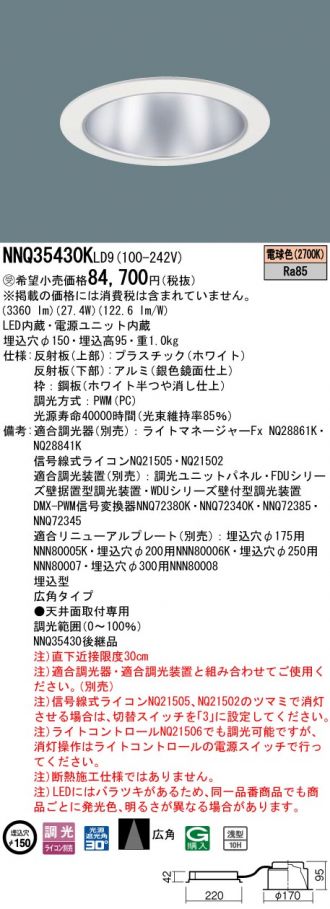 【代金引換不可】舞台演出用 天井埋込型 LED(電球色) 客席ダウンライト 浅型10H・広角タイプ・光源遮光角30度 調光タイプ(ライコン別売)/埋込穴φ150 CDM-R70形1灯器具相当 LED 350形