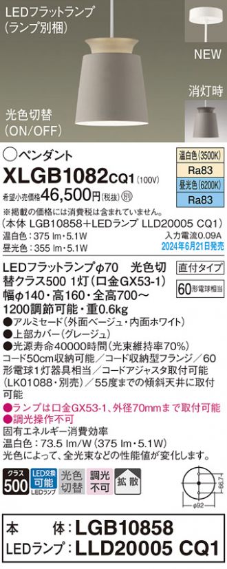 天井吊下型 LED(光色切替) ペンダント アルミセードタイプ・拡散タイプ・直付タイプ LEDフラットランプ交換型・光色切替タイプ 白熱電球60形1灯器具相当(LGB10858+LLD20005CQ1)