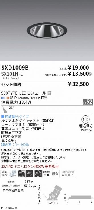 【代金引換不可】グレアレスユニバーサルダウンライト Φ100(SXD1009B+SX101N-L)