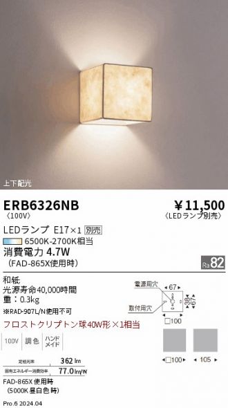 TOP > ブラケット(遠藤照明) > ERB6326NB商品詳細