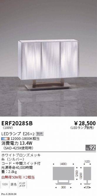 TOP > スタンド(遠藤照明) > ERF2028SB商品詳細
