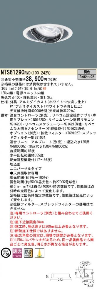 【代金引換不可】天井埋込型 LED(調色) ユニバーサルダウンライト 配光調整機能付 調光タイプ(ライコン別売)/埋込穴φ100 TOLSO(トルソー)・LiBecoM(リベコム) LED 150形