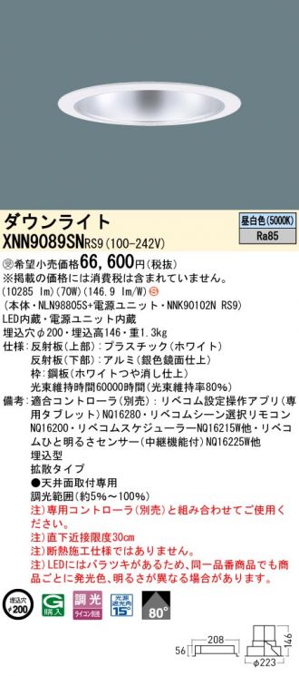 【代金引換不可】天井埋込型 LED(昼白色) ダウンライト ビーム角80度・拡散タイプ・光源遮光角15度 調光タイプ(ライコン別売)/埋込穴φ200 LiBecoM(リベコム) セラメタ150形1灯器具相当 LED 1000形(NLN98805S+NNK90102NRS9)