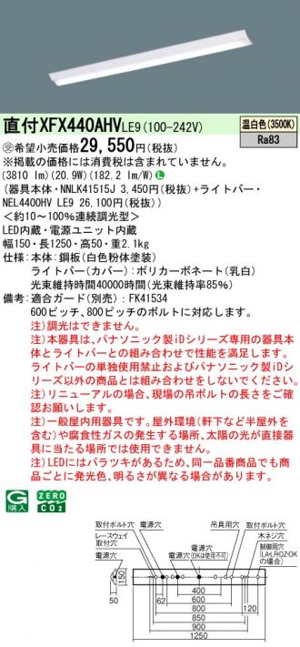 【代金引換不可】天井直付型 40形 一体型LEDベースライト 連続調光型 Dスタイル/富士型 直管形蛍光灯FLR40形2灯器具相当 FLR40形2灯・4000 lm(節電)(NNLK41515J+NEL4400HVLE9)