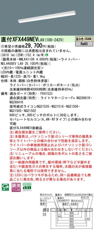 【代金引換不可】リニューアル用 天井直付型 40形 一体型LEDベースライト 連続調光型調光タイプ(ライコン別売) iスタイル/ストレートタイプ/笠なし型 直管形蛍光灯FLR40形2灯器具相当 FLR40形2灯・4000 lm(節電)(NNLK41109+NEL4400EVLA9)