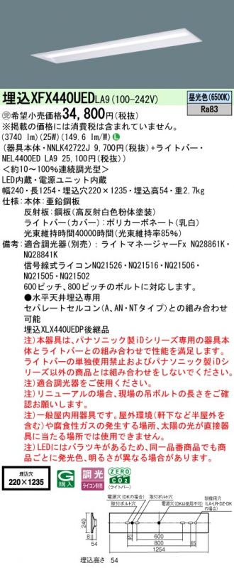 【代金引換不可】天井埋込型 40形 一体型LEDベースライト 連続調光型調光タイプ(ライコン別売) 下面開放型 直管形蛍光灯FLR40形2灯器具相当 FLR40形2灯・4000 lm(節電)(NNLK42722J+NEL4400EDLA9)