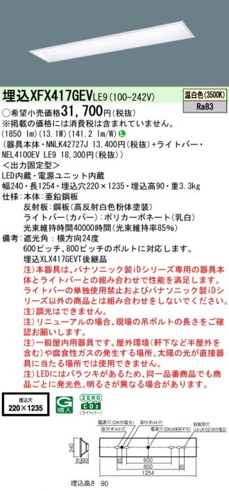 学校用 天井埋込型 40形 一体型LEDベースライト スクールコンフォート 直管形蛍光灯FLR40形1灯器具相当 FLR40形・2000 lm(節電)(NNLK42727J+NEL4100EVLE9)