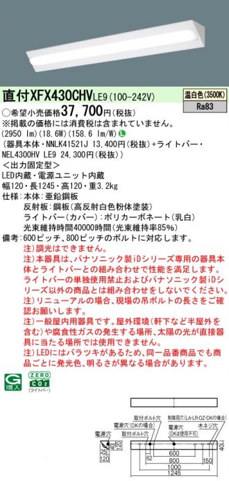天井直付型 40形 一体型LEDベースライト コーナーライト Hf蛍光灯32形高出力型1灯器具相当 Hf32形高出力型・3200 lm(NNLK41521J+NEL4300HVLE9)