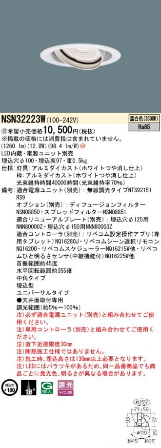【代金引換不可】天井埋込型 LED(温白色) ユニバーサルダウンライト J12V75形(50W)器具相当・ビーム角18度・中角タイプ 調光タイプ(ライコン別売)/埋込穴φ100 LiBecoM(リベコム) 12Vミニハロゲン電球75形1灯器具相当 LED 150形